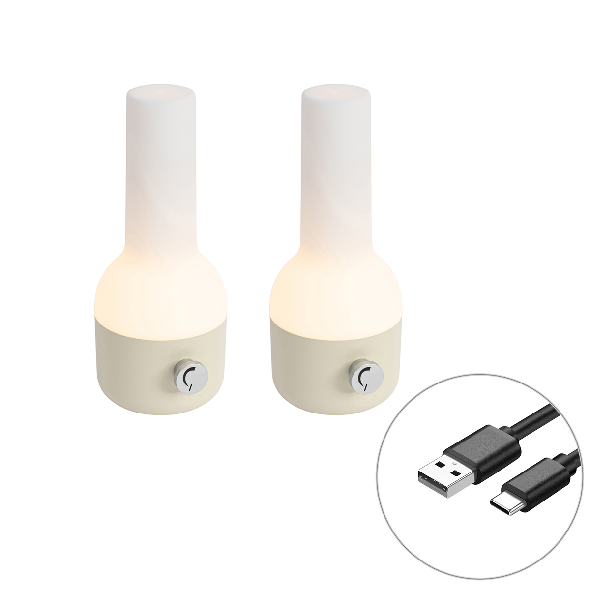 2 darabos kültéri asztali lámpa szett bézs fehérrel, újratölthető LED-del – Haard