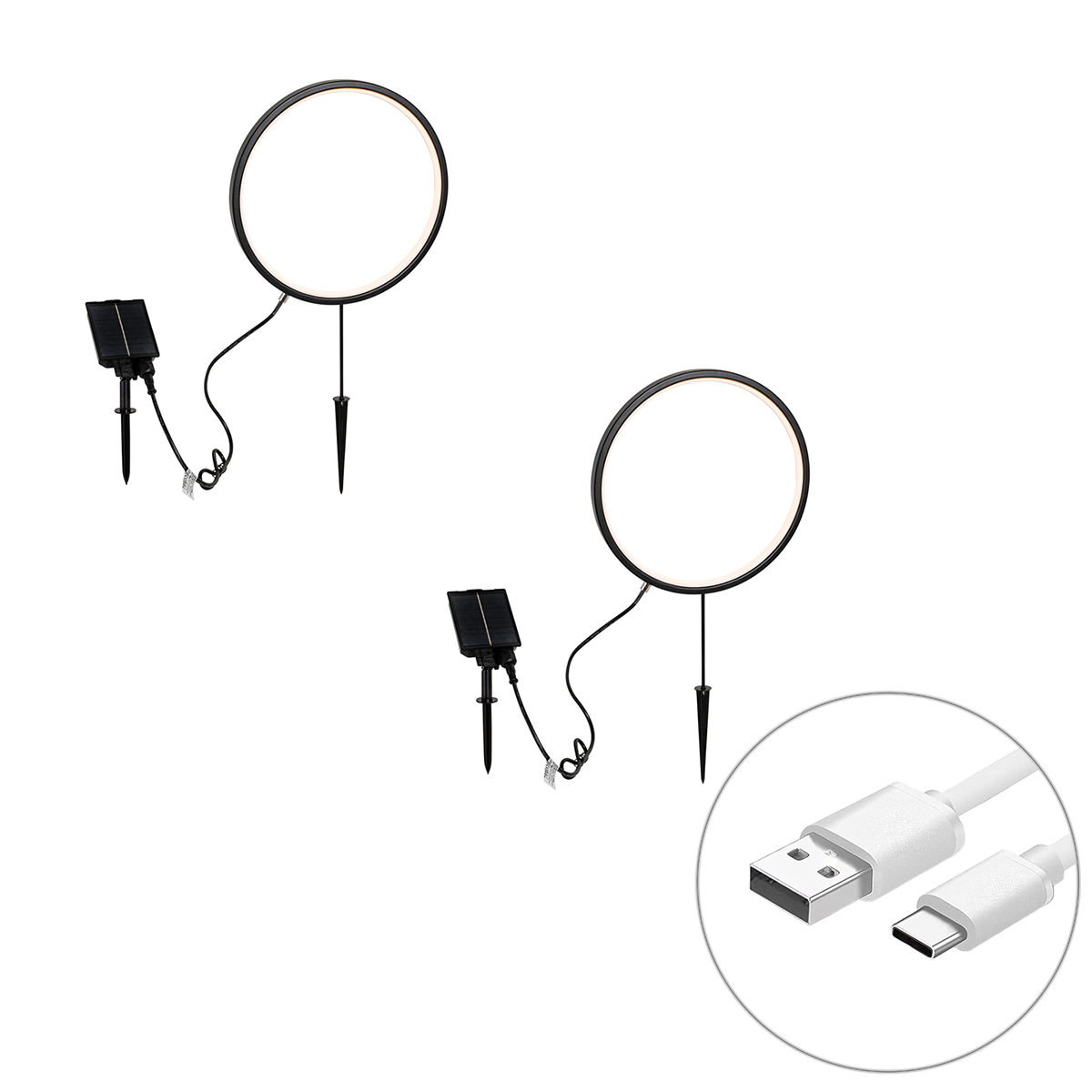 2 db fekete Adalind kerti tükörlámpa szett 60 cm, újratölthető LED-del és napelemmel, IP65