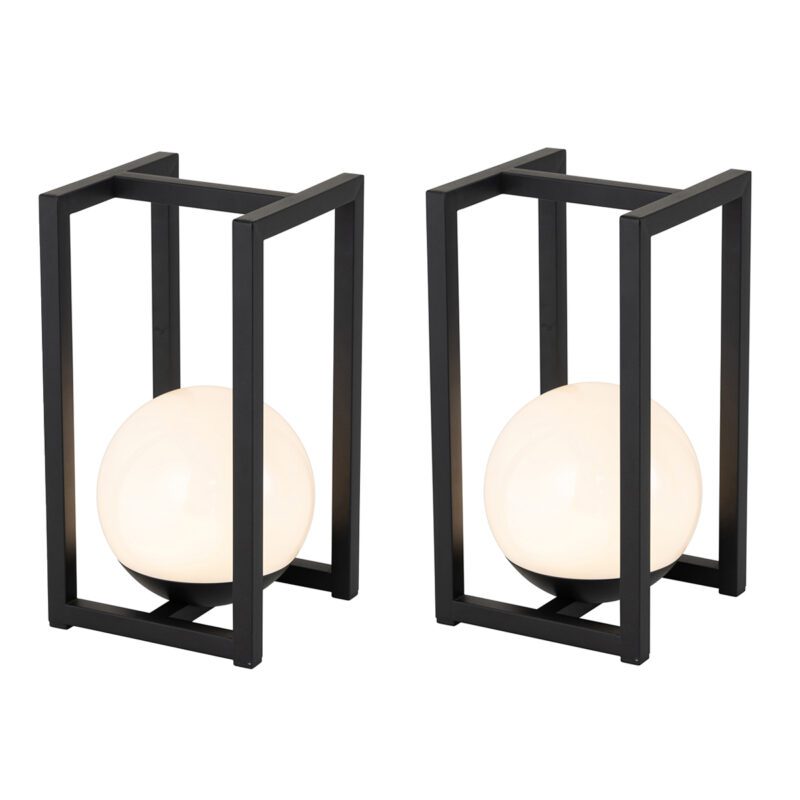 2 db-os kültéri asztali lámpa készlet fekete érintéses újratölthető – Nowi