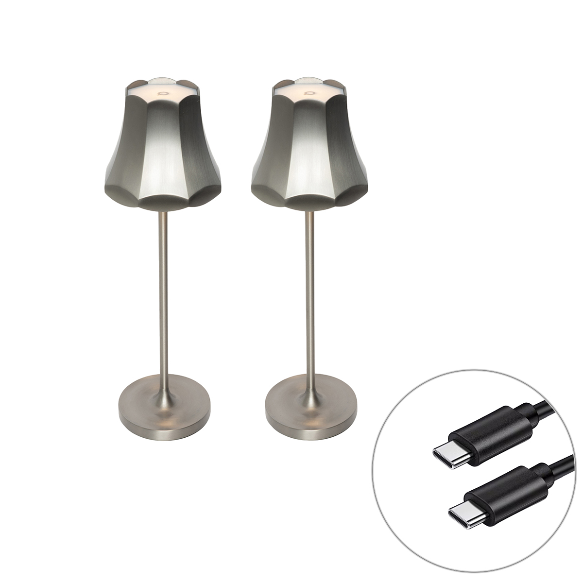 2 db-os Retro asztali lámpa készlet fegyverfémben, újratölthető, IP44 – Granny