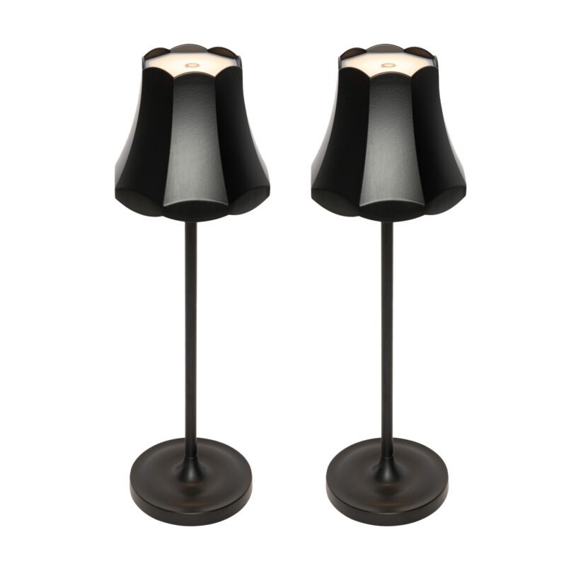 2 db-os Retro asztali lámpa szett fekete újratölthető IP44 – Granny
