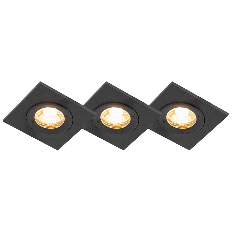 3 db-os készlet fürdőszobai beépített spotlámpa fekete négyzet alakú IP44 – Xena