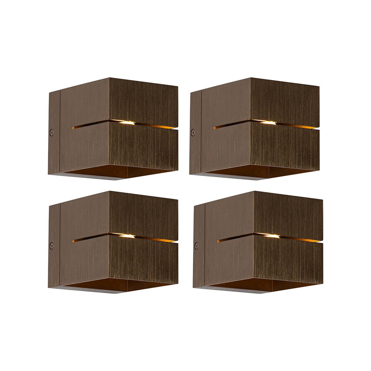 4 db-os készlet intelligens fali lámpa sötét bronz 9,7 cm, beleértve a WiFi G9-et – Transfer Groove. Teremtsen stílusos és modern hangulatot a Transfer Groove fali lámpával.