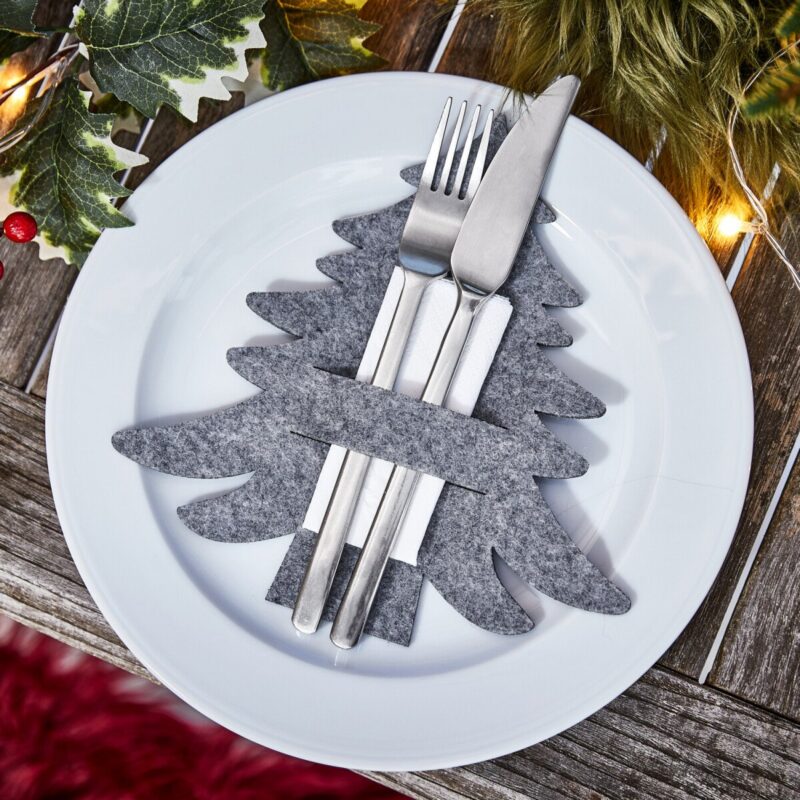 4 evőeszköz tok „fir” , akciós áron most 1890 Ft-ért. Legyen szó evőeszközökről vagy szalvétákról, ezek a dekoratív, fenyőfa formájú filctokok szemet gyönyörködtetőek lesznek az ünnepi asztalon és az adventi dohányzóasztalon.