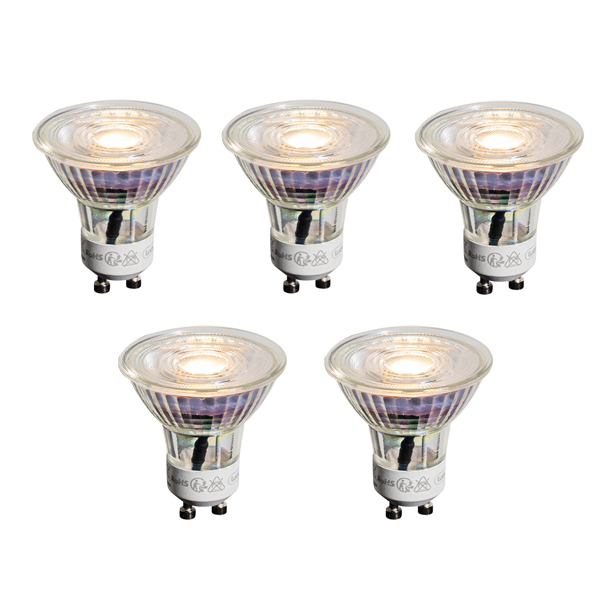 5 darabos GU10 50 mm-es LED izzókészlet, átlátszó, 3,5 W, 330 lm, 3000 K