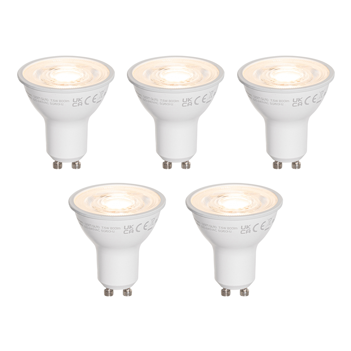 5 darabos GU10 50 mm-es LED izzókészlet, átlátszó, 7,5 W, 800 lm, 3000 K