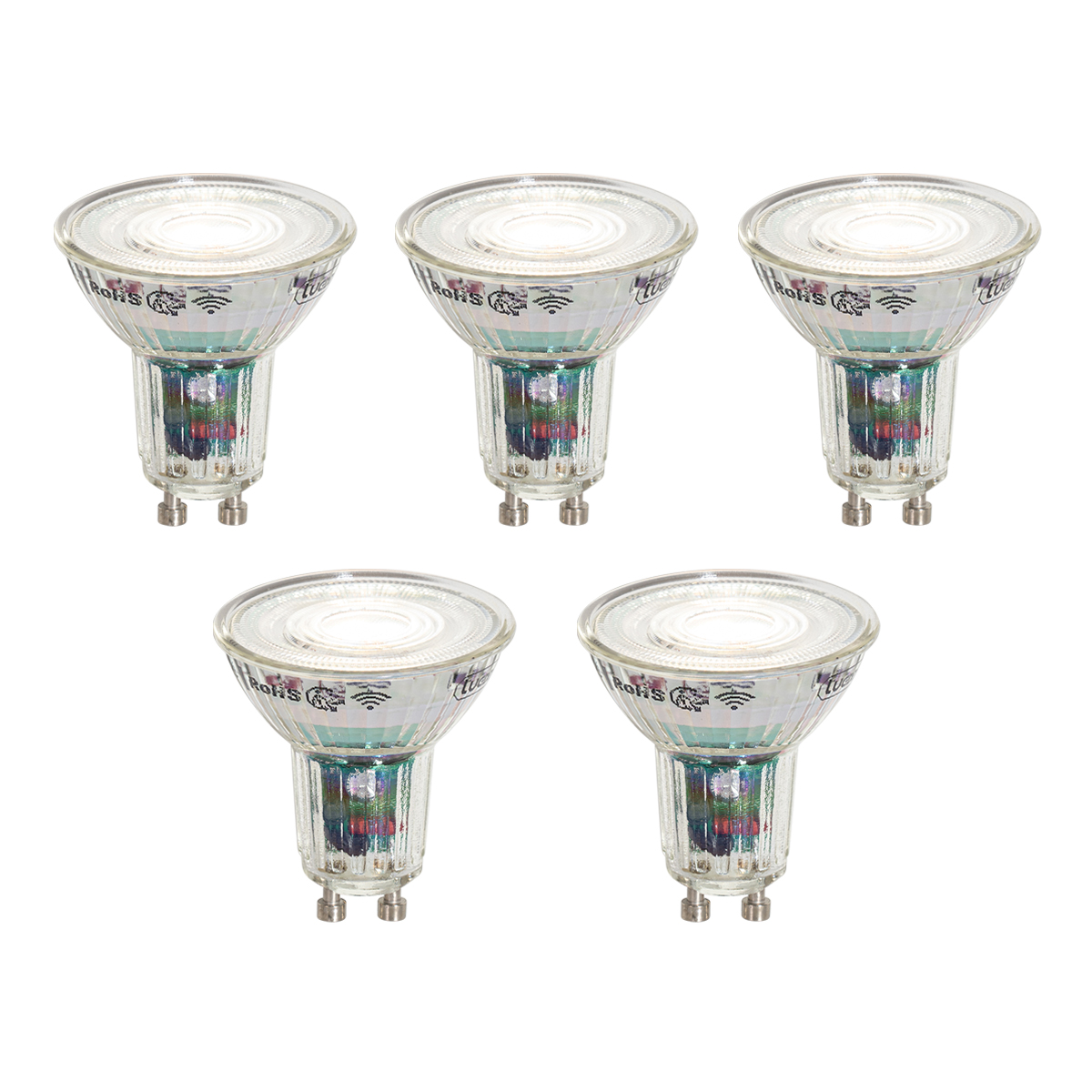 5 darabos intelligens GU10 50 mm-es LED izzókészlet, átlátszó, 4,8 W, 400 lm, 1800-6500 K