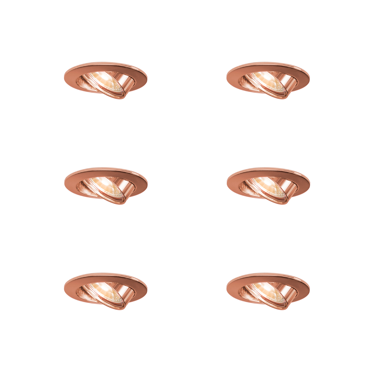 6 darabos, kerek, süllyesztett, dönthető réz spotlámpa szett – Edu