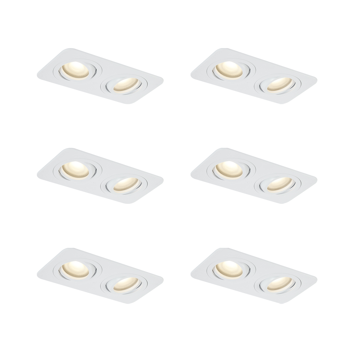 6 darabos, lekerekített, süllyesztett spotlámpa szett, fehér, GU10 50mm, forgatható és dönthető, IP44, 2-lámpás – Alberto