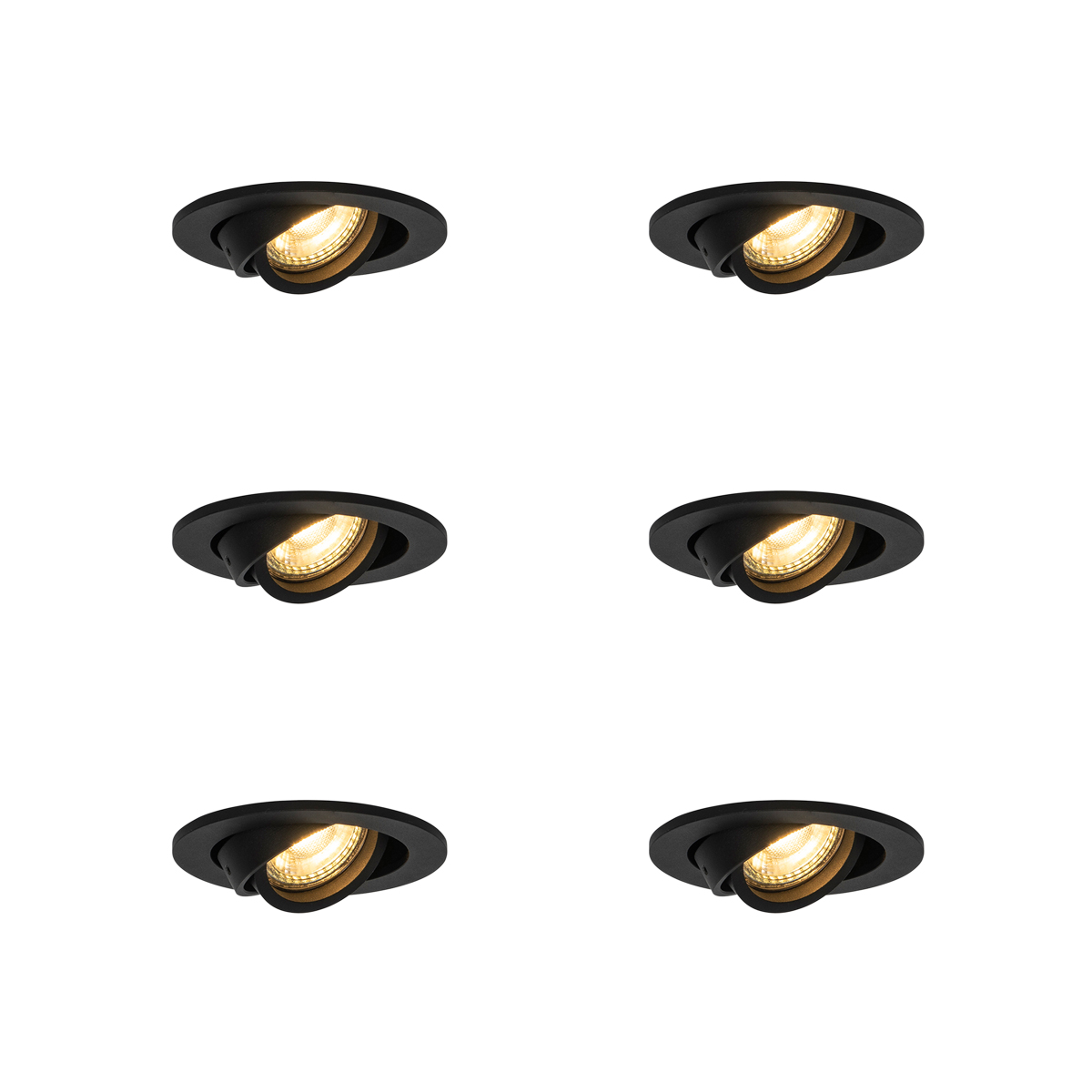 6 darabos modern, süllyesztett, dönthető fekete spotlámpa szett – Club