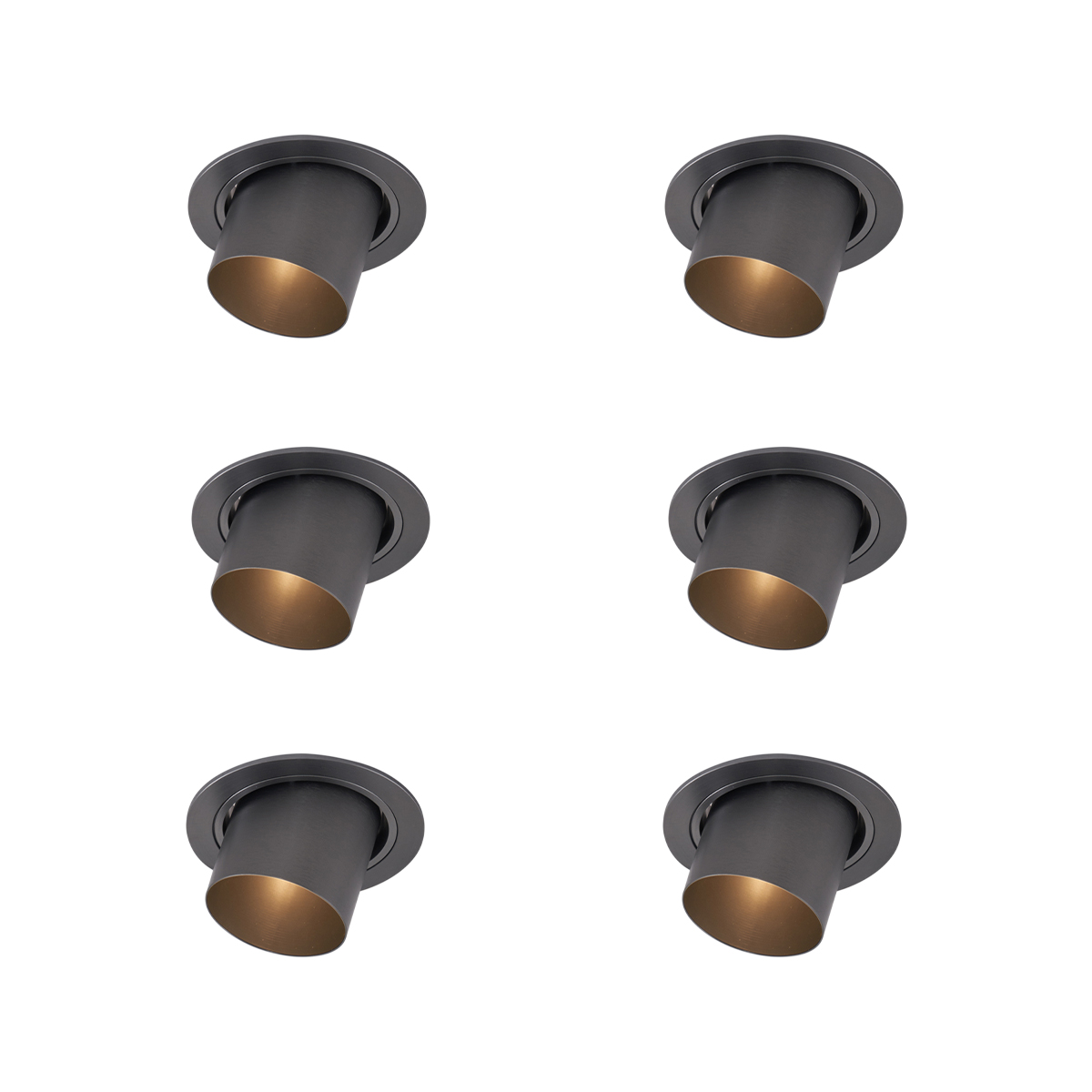 6 darabos modern, süllyesztett spotlámpa készlet, fegyverszürke, GU10 50mm, kerek, dönthető – Installa