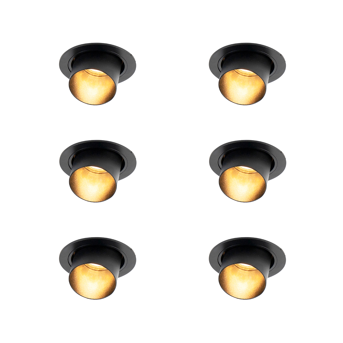 6 darabos modern süllyesztett spotlámpa készlet fekete kerek dönthető – Installa