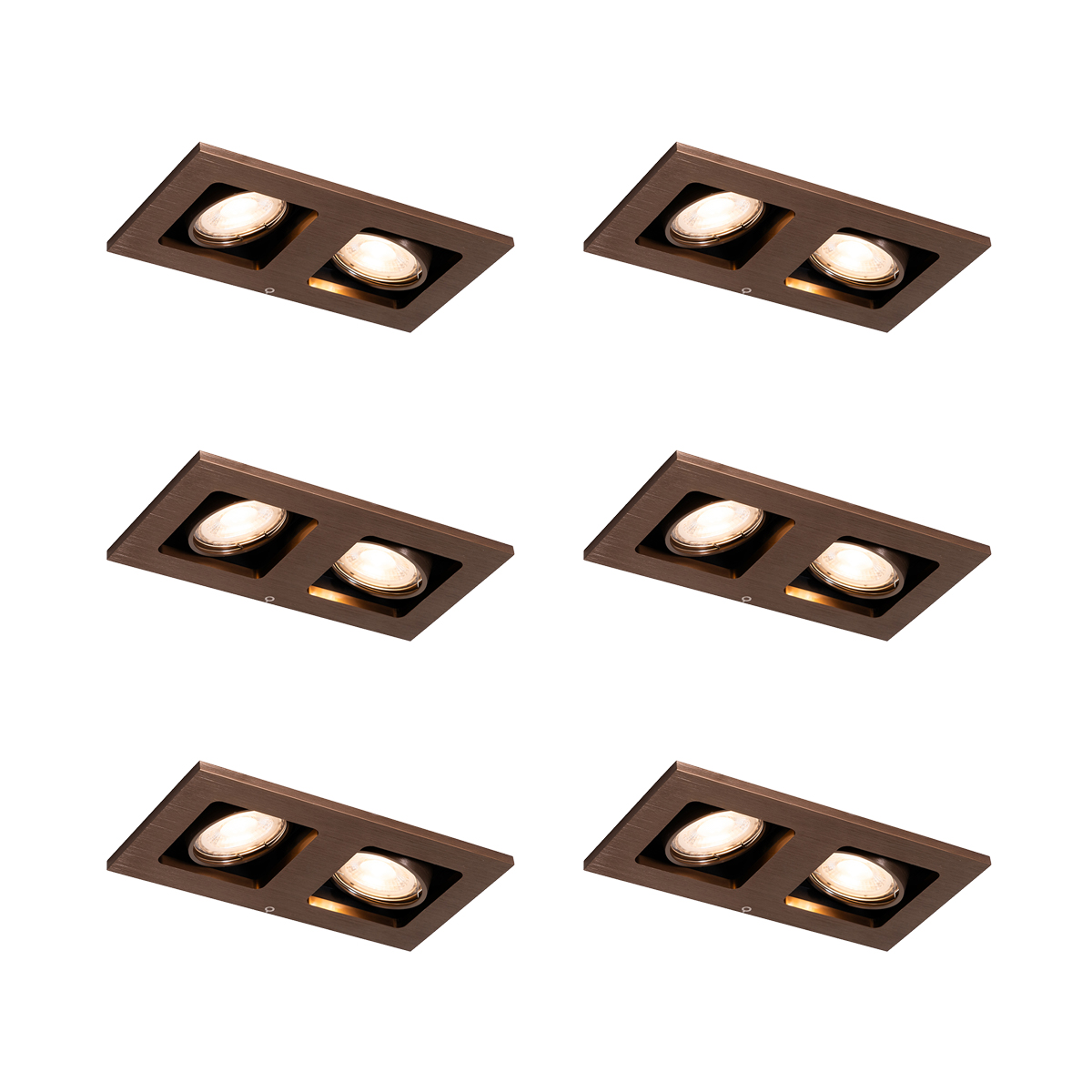 6 darabos süllyesztett spotlámpa készlet sötét bronz téglalap alakú 2-fényű állítható – Qure