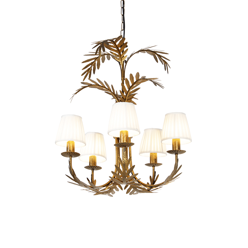 Arany csillár redős klipszel krémszínű 5-lámpás – Botanica