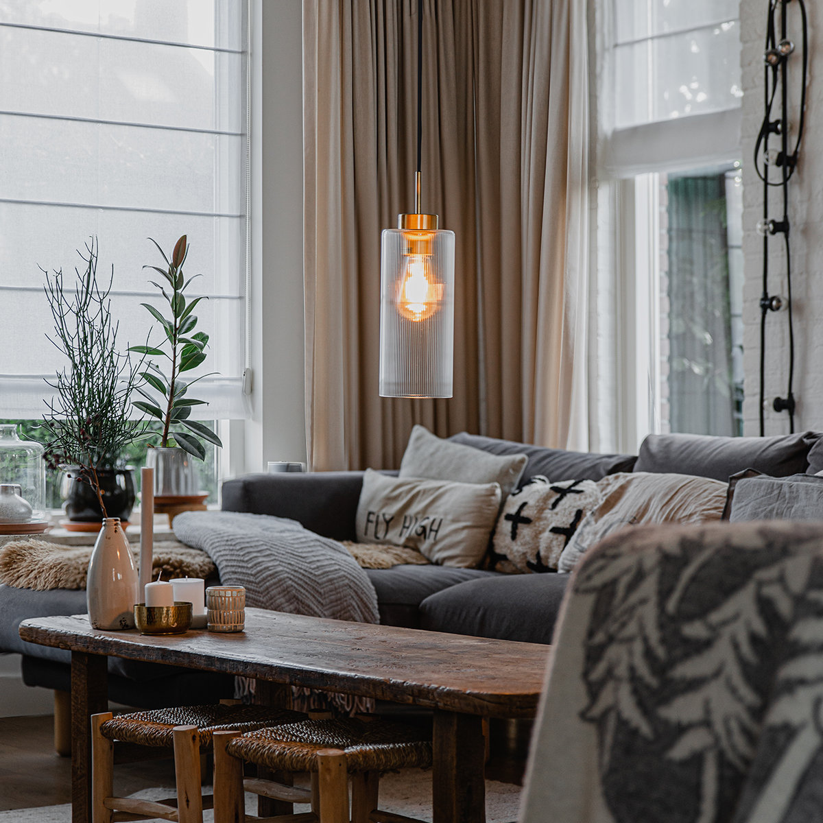 A Laura lógólámpa egyetlen elegáns fényponttal finomítást ad a belső térnek. Időtlen arany kerettel és matt bordázott üvegből készült függőleges árnyékolóval ez a lámpa igazi kötelező darab az Art Deco szerelmeseinek. 12 cm átmérővel és maximum 160 cm magassággal a Laura luxusérzetet kölcsönöz minden helyiségnek. Ne felejtsen el rendelni egy E27-es izzót a lámpa kiegészítéséhez. A Laura külső fényerő-szabályozóval vagy intelligens izzóval szabályozható (nem tartozék). A Laura lógólámpával mindig a megfelelő fényt és egy csipetnyi eleganciát kapja otthonába!