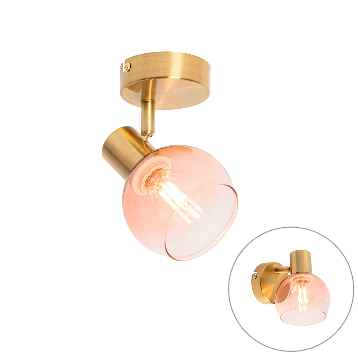 Art Deco spotlámpa arany színű rózsaszín üveggel – Vidro