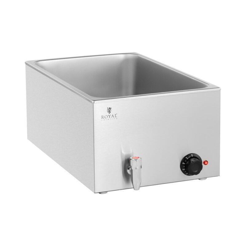 A bain marie a Royal Catering-től kiválóan alkalmas különböző ételek melegen tartására hosszú időn keresztül. Ennek a modellnek a medencéjében különböző méretű edények helyezhetők el, például egy GN 1/1-es tartály, vagy két GN 1/2-es tartály. Az étel melegen tartó sokoldalúan használható, és az eszköz segítségével a kívánt hőmérsékleten tartható egy teljes fogás, például húsok, burgonya és szószok, anélkül, hogy az ételek odaégnének. Az étel melegítő megfelel a legmagasabb vendéglátóipari követelményeknek is, vagyis kitűnő választás éttermekbe, szállodákba, étkezdékbe, büfékbe, snack bárokba, kávézókba vagy idősotthonok és klinikák konyháiba.
