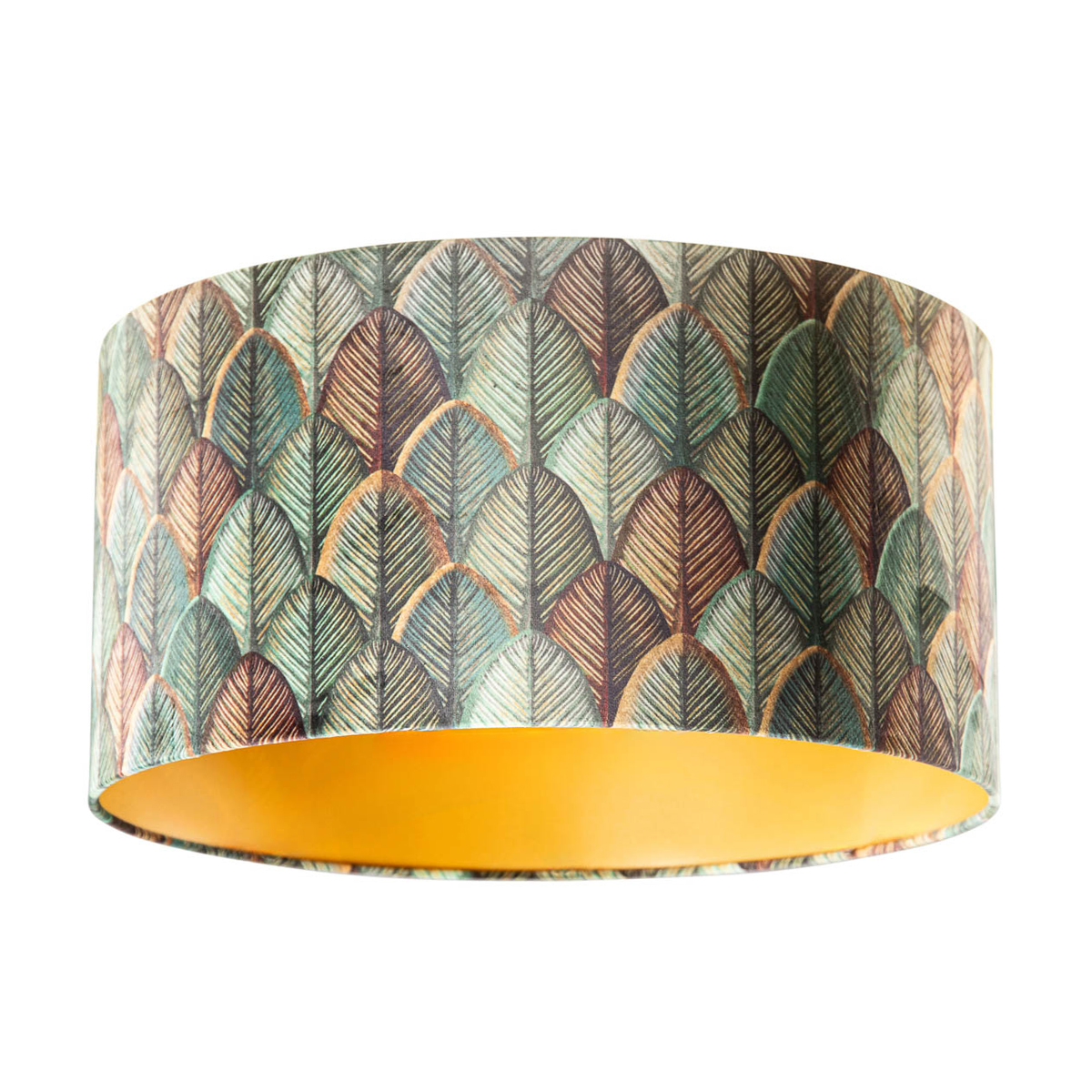 Hozza be a természetet otthonába ezzel a feltűnő, levélminta díszítésű bársony lámpabúrával, melynek belseje luxus arany színű. A részletgazdag levélmintázat földes zöld és barna árnyalataiban meleg, botanikai hangulatot teremt, amely bármilyen helyiségnek vibráló és stílusos megjelenést kölcsönöz. Az arany belső meleg, lágy fényt áraszt, amint bekapcsolja a lámpát, azonnal meghívó hangulatot teremtve. A 50 cm-es átmérőjével és 25 cm-es magasságával ez a lámpabúra ideális nagy asztali lámpákhoz vagy hangulatos függőlámpaként az étkezőasztal fölé. Hagyja, hogy a belső tere ragyogjon ezzel a gyönyörű, természetes látványossággal!