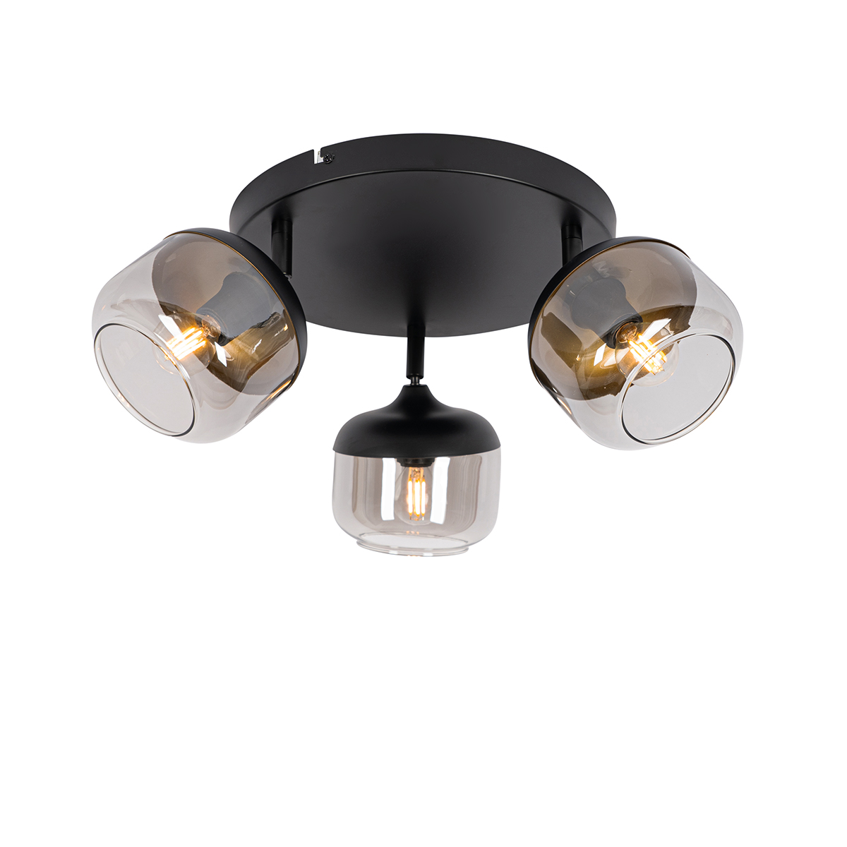Design spotlámpa fekete arannyal és füstüveggel 3-lámpás kerek – Kyan