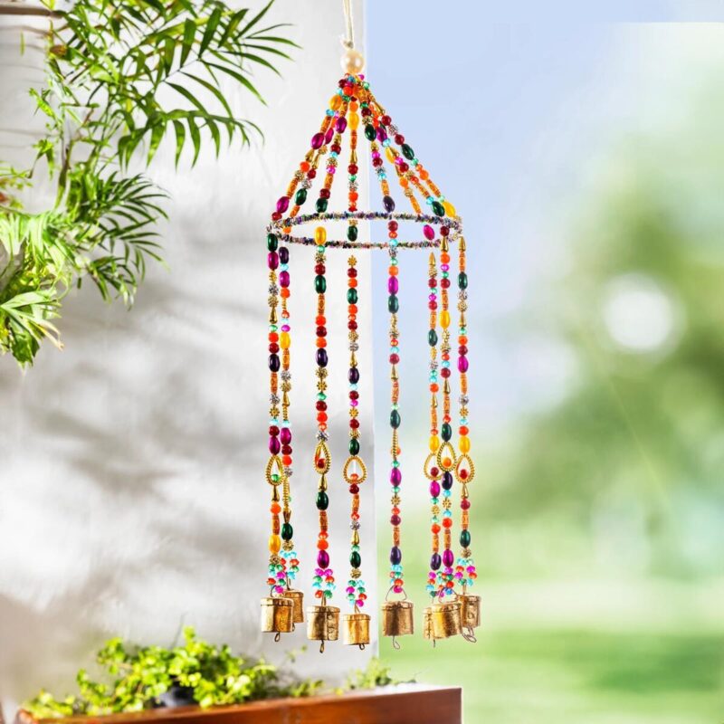 Egzotikus szélcsengő színkeverék hossza 55 cm, akciós áron most 3730 Ft-ért. A csillogó gyöngyök vidámsága és színvilága nagyon szép dekorációvá teszi ezt a szélcsengőt, amelyet felakaszthat egy olyan helyre, ahol szabadon csilingelhet.