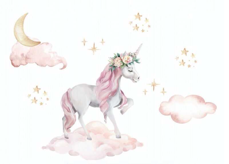 Fairytale XXL egyszarvú falmatrica lányoknak – Könnyen felhelyezhető és eltávolítható dekoráció, amely inspiráló motívumokkal díszíti a gyerekek kedvenc terét.