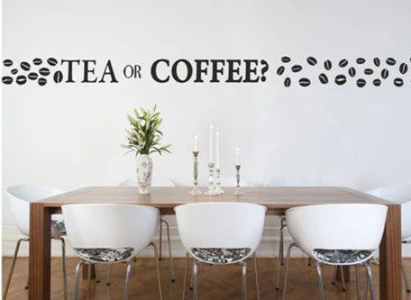 Falmatrica a következő kérdéssel: TEA OR COFFE? 100 x 200 cm – Változatos motívumokkal rendelkező falmatrica, amely harmonikusan illeszkedik modern, klasszikus vagy minimalista enteriőrbe is.