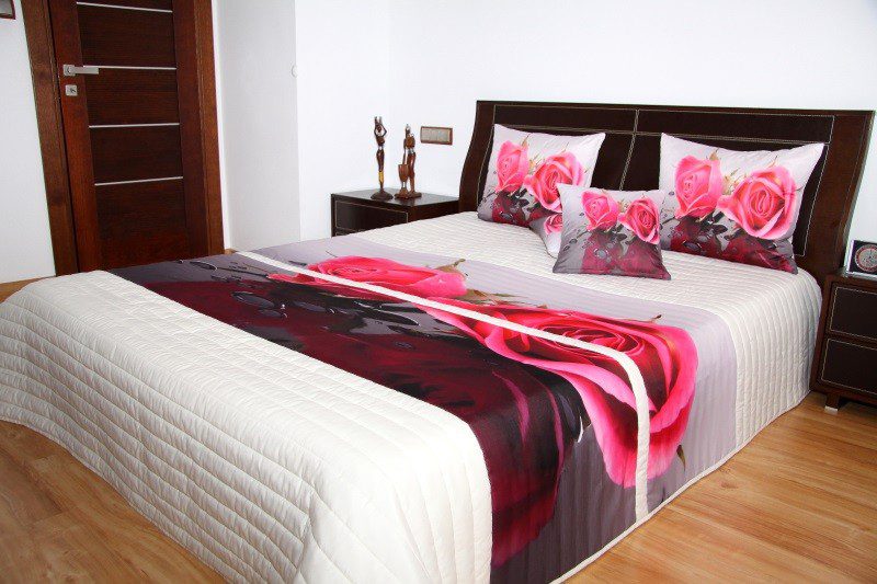 Fehér ágytakaró rózsaszín rózsa motívummal Szélesség: 220 cm | Hossz: 240 cm, kedvező áron most 30030 Ft-ért. anyag: 100% Polyester2db párnahuzat ingyenesen 50x60cm.