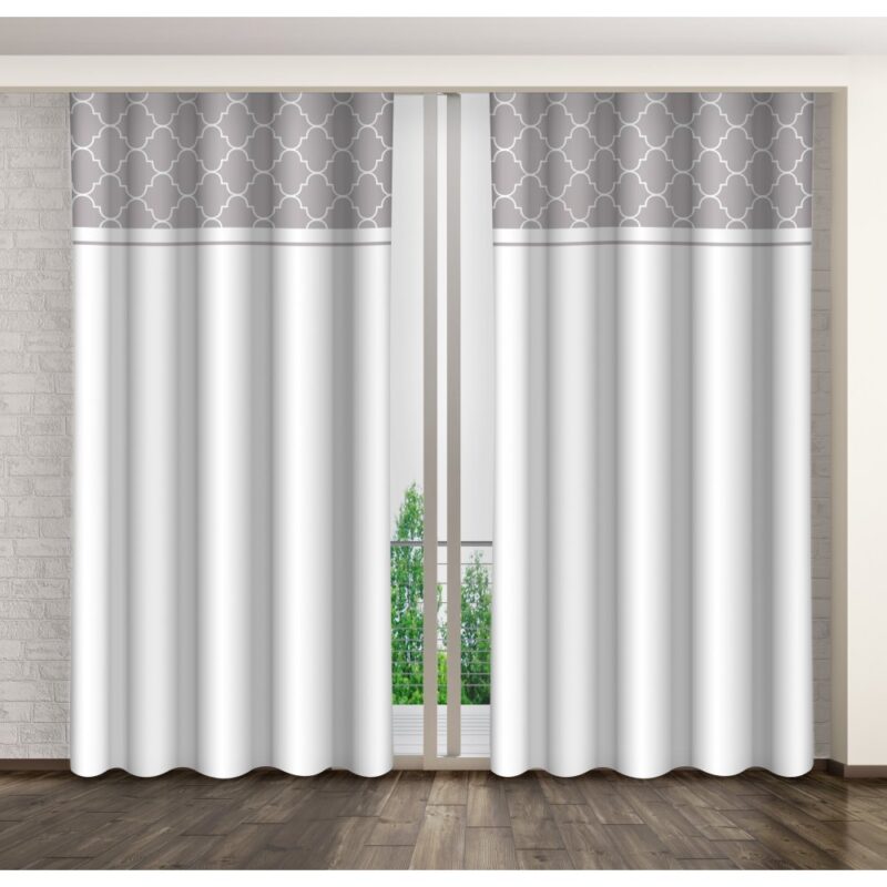 Fehér színű modern mintás drapéria csipeszes rögzítéssel Hossz: 250 cm
