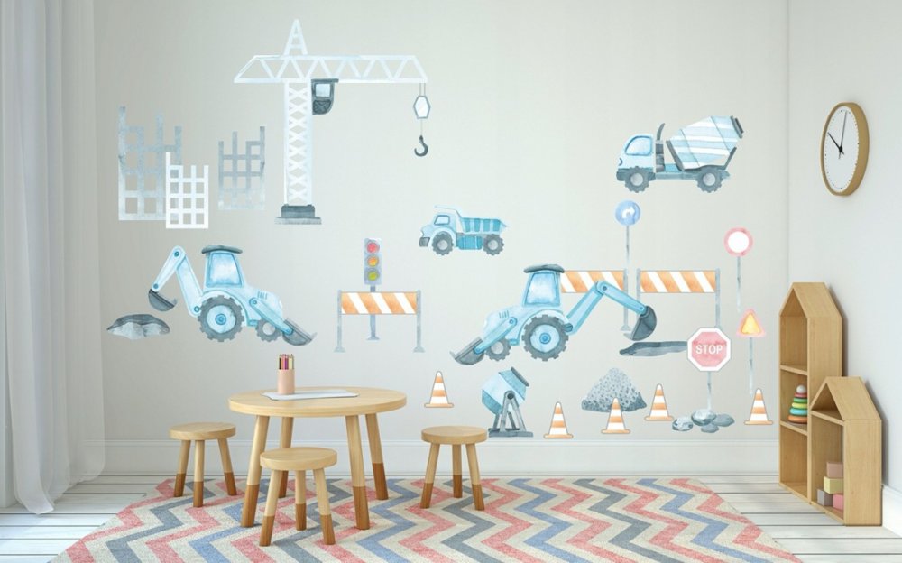 Gyerek falmatrica Épületek 150 x 300 cm – Vidám, élénk színű falmatrica, amely játékos, barátságos hangulatot varázsol minden gyerekszobába, ösztönözve a gyerekek képzeletét.