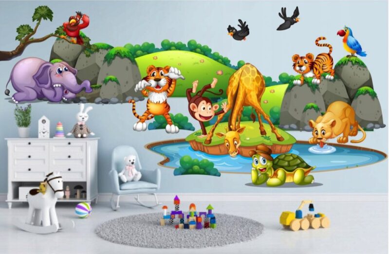 Gyerek falmatrica Szafari 80 x 160 cm – Aranyos és szerethető mintákkal ellátott falmatrica, amely minden gyerekszobát varázslatos hellyé alakít tanuláshoz és játékhoz egyaránt.