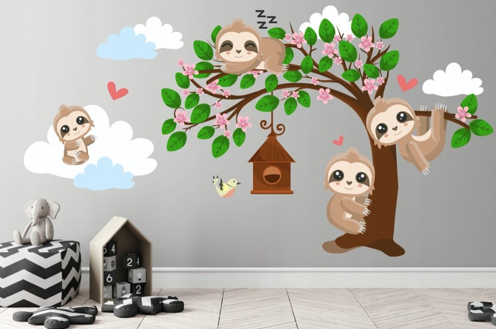 Gyerek falmatrica Szerelmes lajhárok 80 x 160 cm – Aranyos és szerethető mintákkal ellátott falmatrica, amely minden gyerekszobát varázslatos hellyé alakít tanuláshoz és játékhoz egyaránt.