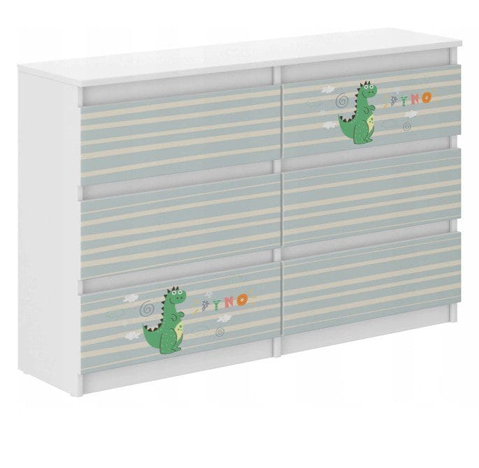 Olyan ajánlatot hozunk, amelyben gyönyörű komódokat talál fiúknak és lányoknak. A mesebeli motívumok, minőségi anyagok, gyönyörű színek minden gyerekszobát egy kis mesevilággá varázsolnak. Kínálatunkban szereplő összes gyermek komódot úgy terveztük, hogy biztonságos és egyben esztétikus legyen. Nem csak mesésen szép, hanem kiváló minőség is!A komód fehér forgácslapból készült, felületkezelt furnérral. A vezetőkre szerelt fiókok ütközőkkel vannak ellátva, hogy megakadályozzák azok teljes kihúzását. A színes nyomattal ellátott komód elülső része szép élénk színekkel rendelkezik, és speciális laminált anyaggal van rögzítve, hogy ne fakuljon és kopjon. Kendővel és vízzel tisztíthatja. Műszaki adatok:Anyaga: laminált lemez és PVCFiókok száma: 6 dbSzín: fehér + nyomatA komód méretei: 77x30x140 cm (magasság x mélység x szélesség)