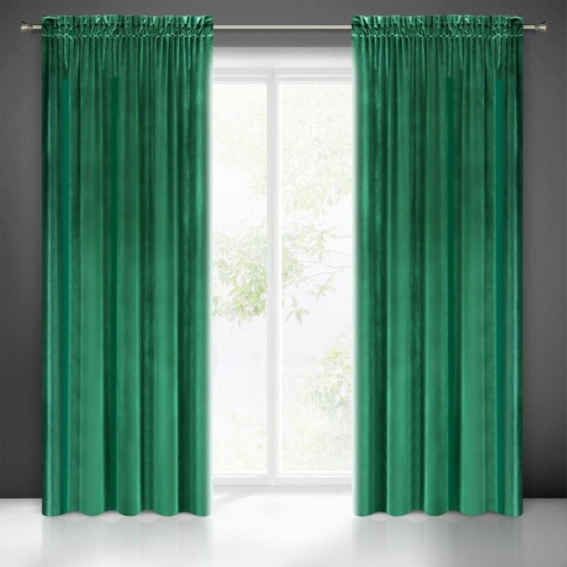 Gyönyörű mélyzöld bársonyfüggöny ráncolószalaggal Hossz: 300 cm