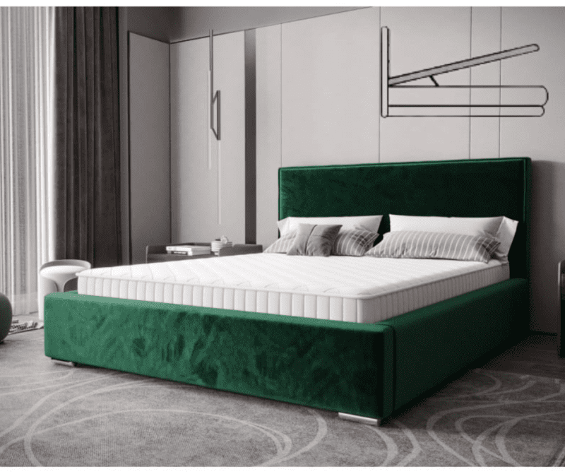 Időtlen kárpitozott ágy minimalista dizájnban, zöld színben 180 x 200 cm Ágyneműtartóval