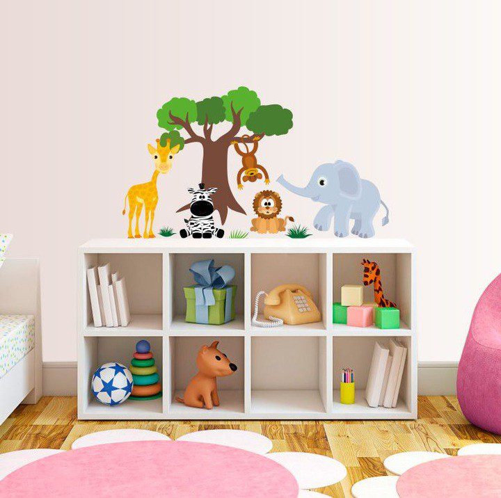 Imádnivaló állatok gyönyörű falmatrica 100 x 59 cm – Vidám, élénk színű falmatrica, amely játékos, barátságos hangulatot varázsol minden gyerekszobába, ösztönözve a gyerekek képzeletét.