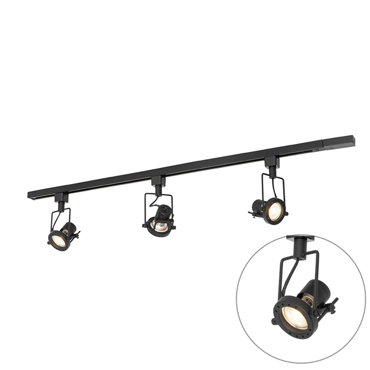 Ipari sínrendszer 3 spotlámpával, 1 fázisú fekete – Suplux