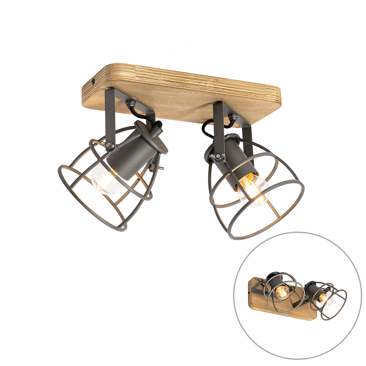 Ipari spotlámpa sötétszürke fával állítható 2-lámpás – Arthur