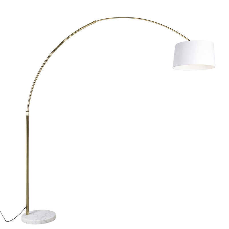 Ív lámpa sárgarézzel és fehér szövetbúrával, fehér 50 cm – XXL