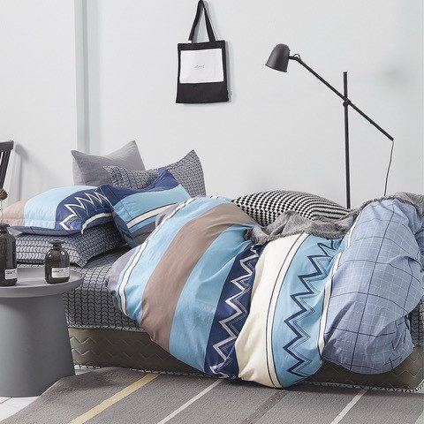 Kék pamut ágynemű geometriai motívummal 3 rész: 1db 160 cmx200 + 2db 70 cmx80