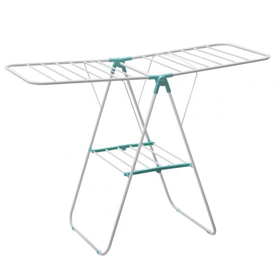 Két emeletes ruhaszárító. A kiváló minőségű anyagokból készült ruhaszárító biztosítja az időjárásállóságot, védi a termék elemeit a korróziótól és a sérülésektől.Specifikációk: Színe: fehérMéretek: 99 x 138 x 60 c