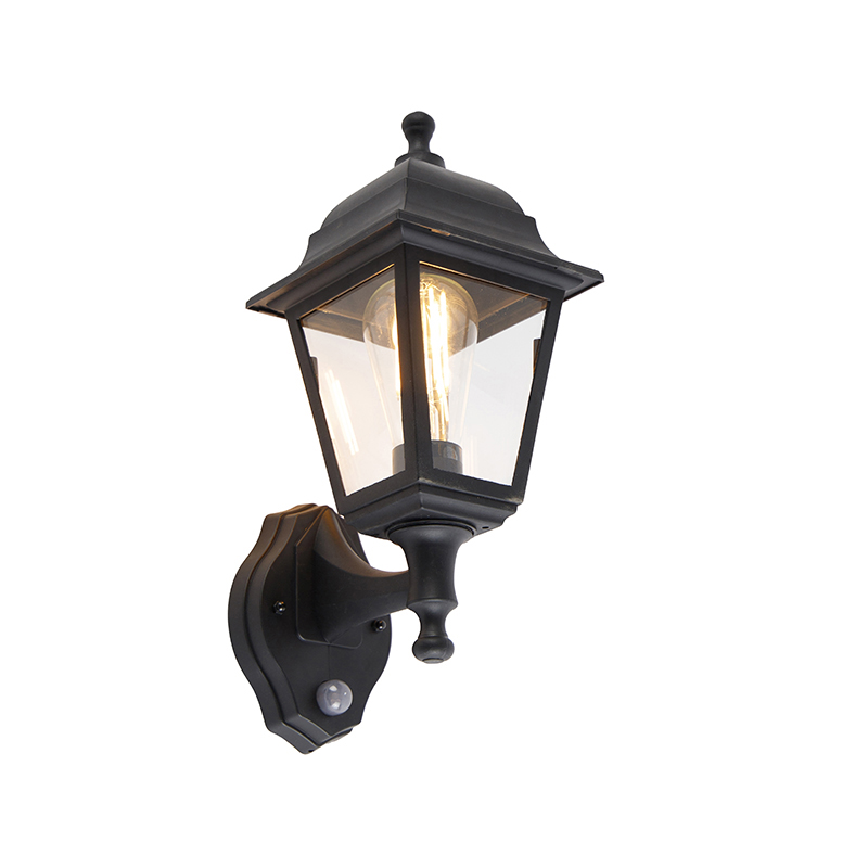 Klasszikus kültéri fali lámpa fekete mozgásérzékelővel – Capital