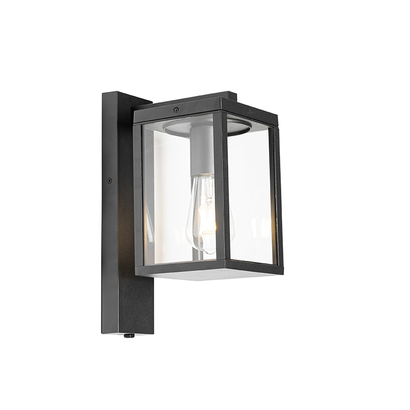 Kültéri fali lámpa fekete IP44 szürkületi érzékelővel – Charlois