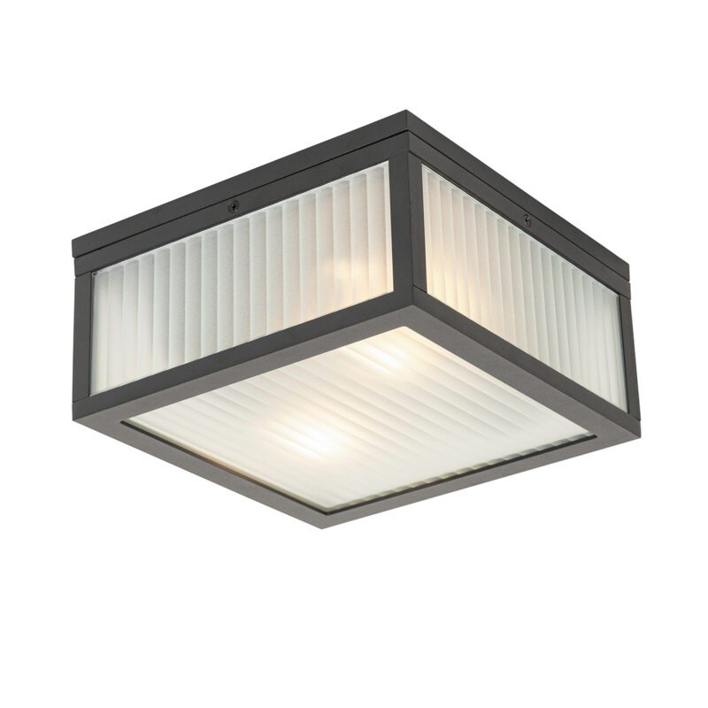 Kültéri mennyezeti lámpa fekete bordás üveggel 2 fényes IP44 – Charlois. A megfelelő kültéri világítás nagyon fontos a kert hangulatához.