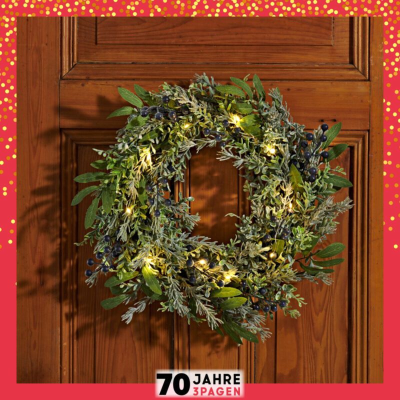 Led koszorú ø 45 cm, akciós áron most 8480 Ft-ért. Ez a fűfélékből, levelekből és bogyókból álló buja LED-koszorú úgy néz ki, mint az igazi a bejárati ajtón, falon vagy ablakon, és sokáig szép marad.