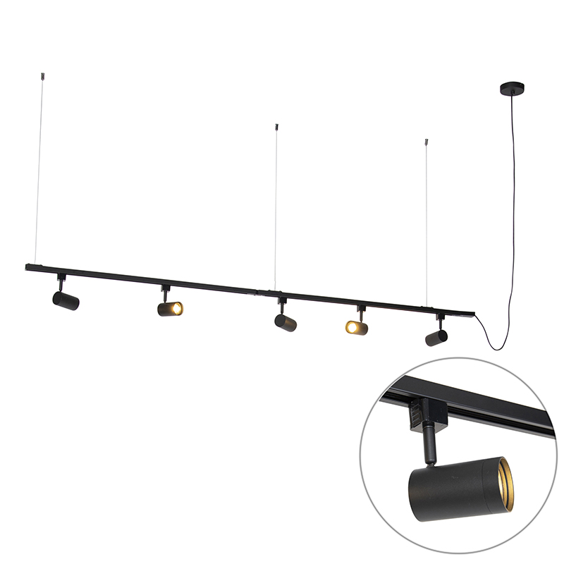 Modern 1-fázisú függesztett sínrendszer 5 fekete spotlámpával – Jeana