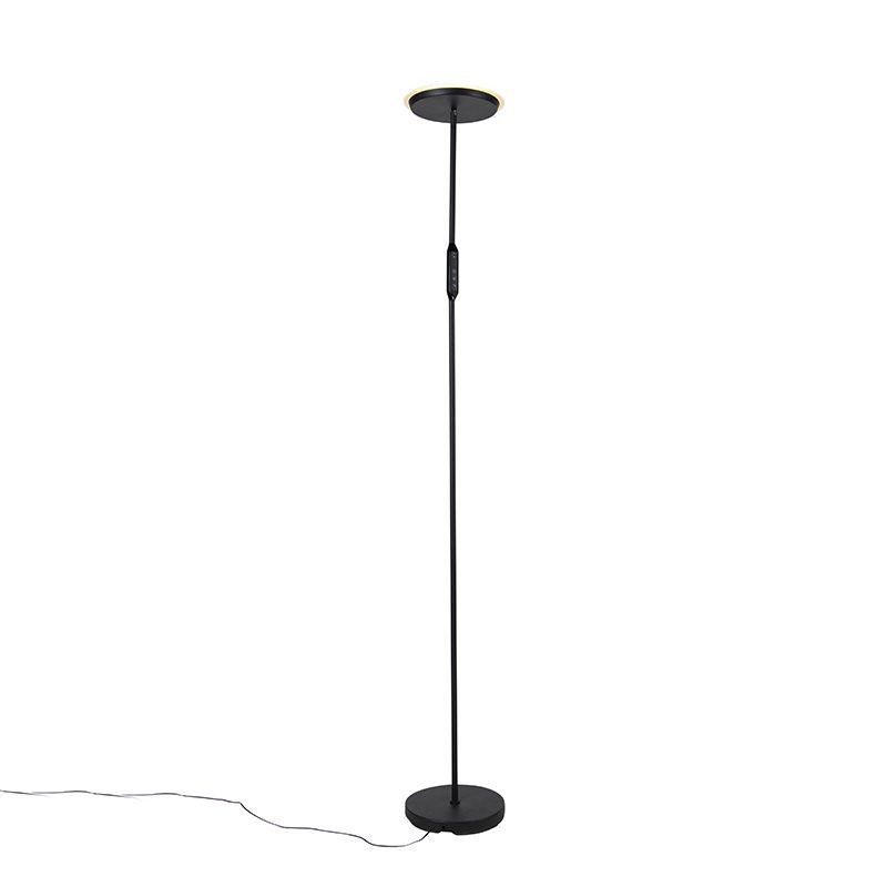 Modern állólámpa fekete, LED-del és fényerő-szabályozóval – Bumu. Idő, hogy stílust varázsoljon a belső térbe vagy az irodába?