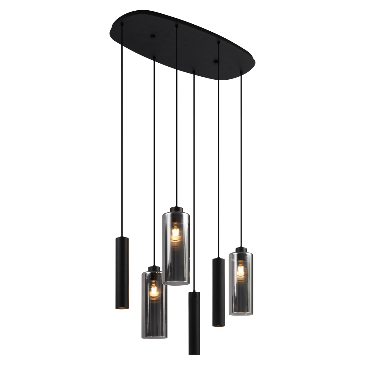 Modern Duplantis függőlámpa fekete füstüveggel, 6 fényponttal