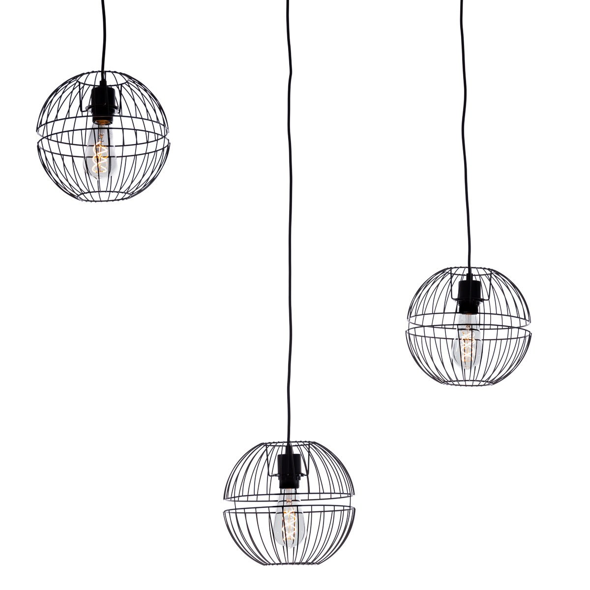 Különleges lámpát keres? Ne keressen tovább! A Sphaera segít megteremteni a kívánt hangulatot. A 3-lámpás lógólámpa gyönyörűen fekete acélból készült, modern hangulatot kölcsönözve a helyiségnek. A Sphaera nagyszerűen mutat az étkezőasztal felett, a konyhasziget felett vagy az otthoni irodában. A nyitott búrák játékos fényhatást keltenek a szobában. A lámpa teljes magassága 140 cm, hossza 100 cm. A lógólámpa magassága állítható, minimum 56 cm. Kérjük, vegye figyelembe: a fényforrások nem tartozék, ezért ügyeljen arra, hogy rendelkezésére álljon három E27-es fényforrás, mindegyik maximum 40W. A lámpa külső fényerő-szabályozóval is szabályozható (pl. a fali kapcsolóval). Teremtsen otthonában hangulatos légkört a Sphaera segítségével!