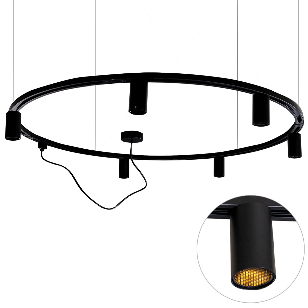 Modern függesztett sínrendszer 6 fekete reflektorral, 1 fázisú GU10 50 mm – Iconic Ruby Honey
