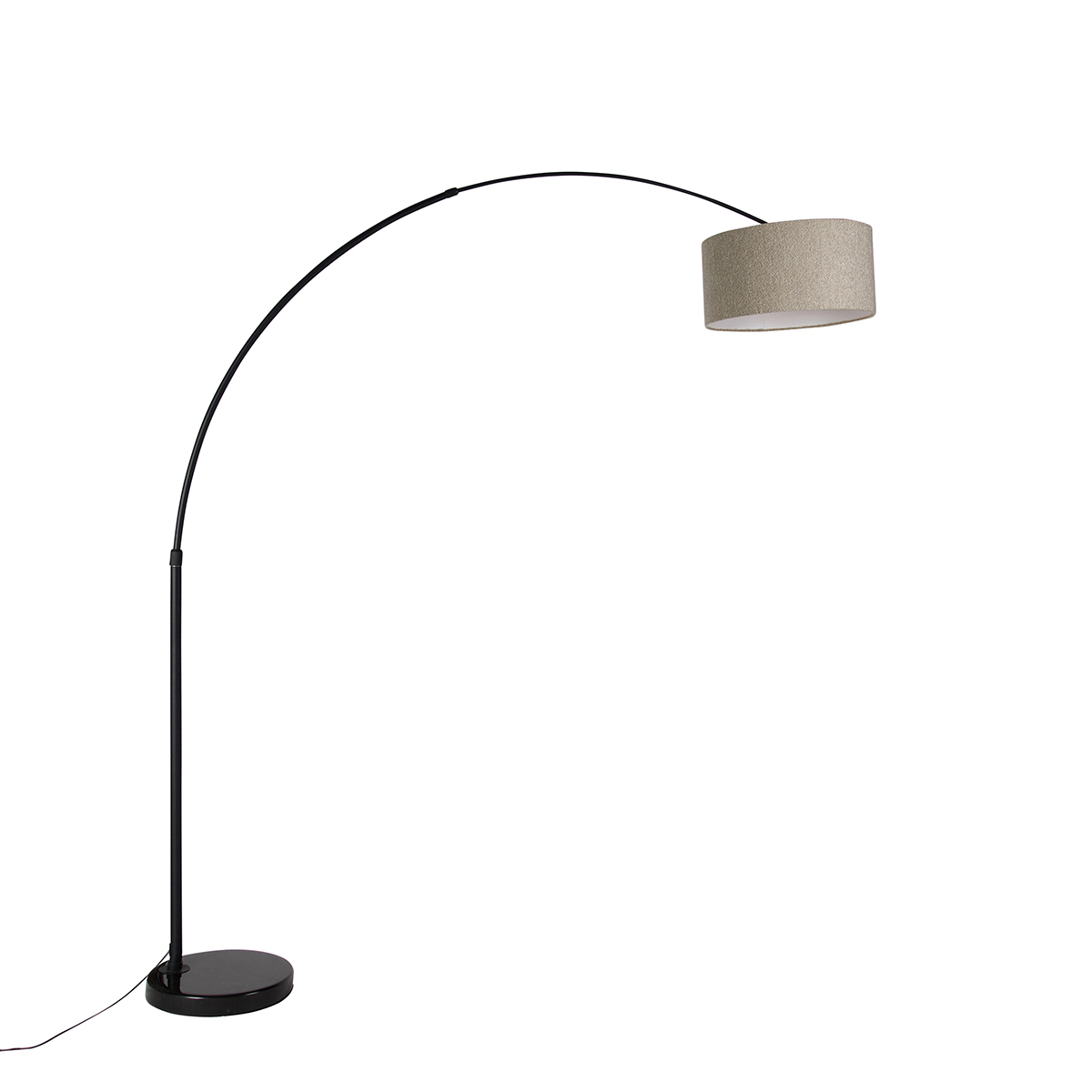 Modern íves állólámpa fekete, bézs bouclé lámpabúrával 50 cm – XXL. Ha modern belső térre gondolsz, akkor az XXL-re gondolsz!
